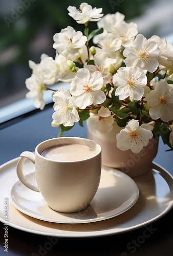 cup, drink, breakfast, background, hot drink, table, flower, morning, white, fresh, floral, spring, food, bouquet, tea, hot, romantic, wooden, closeup, cafes, summer, beverage, design, black, aroma, green, healthy, nature, love, blossom, brown, mug