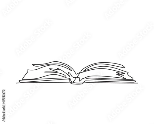 Single continuous line drawing of thick open book logo label. Campus library icon label concept. Trendy one line draw graphic design vector illustration