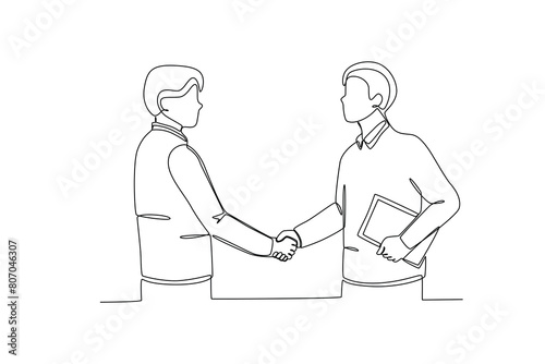 Single continuous line drawing of young Coworkers shaking hands. Business agreement celebration concept continuous line graphic draw design vector illustration