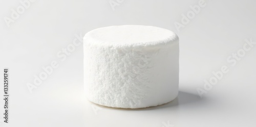 Single fluffy marshmallow, pristine white background, isolated, delicious, food