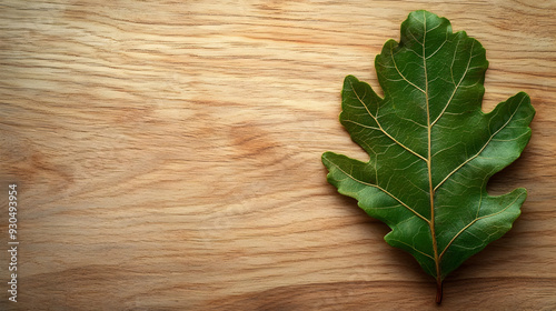 Single Green Leaf on Wooden Background - Nature's Simplicity in Detail