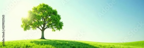 Single isolated tree against bright sunlight filter, green, calm, tree