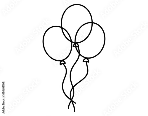 balloon, party, celebration, birthday, event, decoration, festive, fun, joy, helium, air, floating, flying, single line, drawing, illustration, art, design, graphic, simple, minimalist, outline, vignetting, flocked, group, string, curve, isolated, white background, line art, vector, graphic design, artistic, cheerful