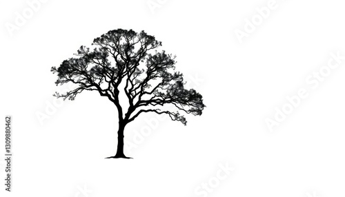 Single, majestic tree silhouetted against a pure white backdrop, photography, stock photo