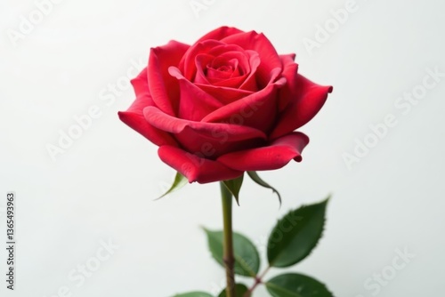 Single perfect rose, white backdrop, clipping path, red rose, elegant