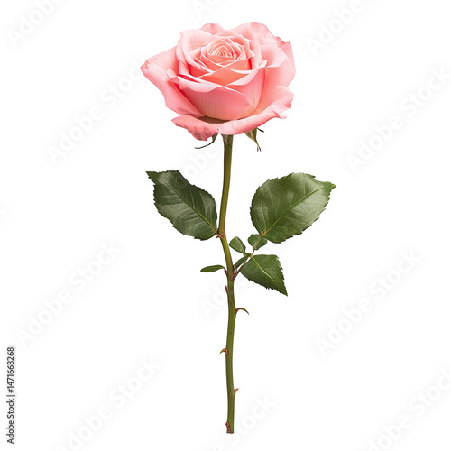 rose, pink, flower, bloom, stem, leaf, nature, beauty, floral, gift, romantic, love, valentine, elegant, pretty, beautiful, bouquet, fresh, present, wedding, arrangement, decoration, garden, plant, red, green, isolated, studio, photo, closeup, single, natural, honed, freshness