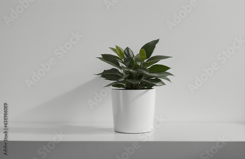 single potted plant on table white canvas background ,white studio background, white ambient background, abstract white background wall . AI Generative