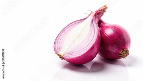 Single red onion, vibrant color, clean white backdrop, organic, healthy