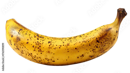 Single ripe yellow banana showing natural tropical fruit freshness healthy organic food and vibrant color on white background