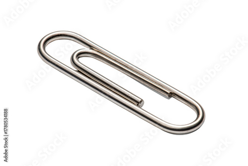 Single silver metal paperclip isolated on black background studio shot office stationery, Png, Isolated on Transparent Background, Cut Out
