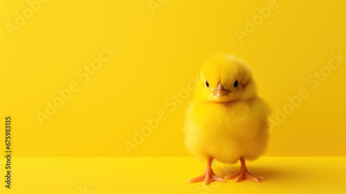 Single Small Chicken on Yellow Background