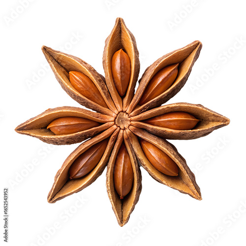 star, anise, spice, seed, pod, ingredient, cooking, baking, aromatic, pungent, fragrant, herb, flavouring, brown, textured, single, object, transparent, white, background, no, shadow, reflections, macro, closeup, detailed, food, universal, cookery, asian, indian, chinese, liquorice, favor, dried, plant, nutmeg, cinnamon, clove, cardamon, ginger, allspice