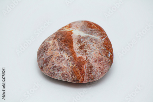 Single stone with natural drawing. Marble pattern and veins. Red and brown colours. On white background.