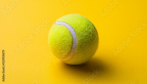 Single tennis ball isolated on bright yellow backdrop. Sport, competitive game.