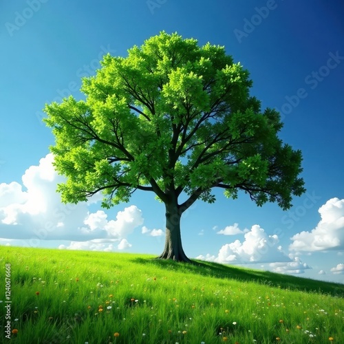 Single tree against vast sky, four seasons transition Dramatic lighting , powerful, outdoor, tranquil