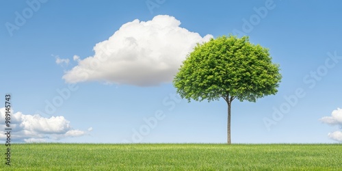 blue, single, cloud, fluffy, sky, field, tree, green, calmness, white, photo, meadow, landscape, serenity, spring, scenery, peaceful, summer, grass, panorama, rural, environment, nature