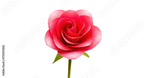 Single Vibrant Reddish-Pink Rose Flower Isolated on Clean White Background
