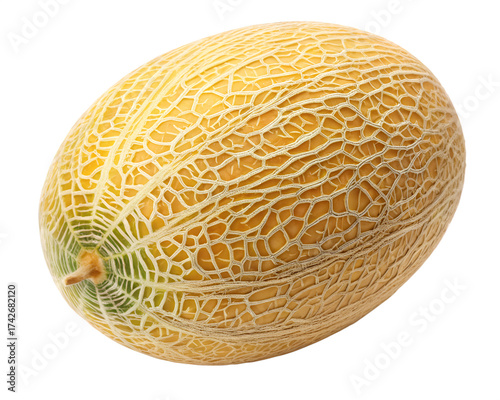 cantaloupe, melon, fruit, whole, single, isolated, food, produce, sweet, ripe, yellow, green, rind, texture, pattern, organic, healthy, fresh, natural, summer, ingredient, juicy, refreshing, agriculture, harvest