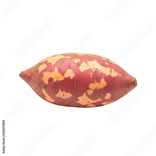 Single Whole Raw Sweet Potato on a Transparent Background, White Background