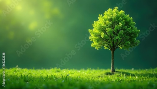 Single young tree, thin trunk, bright green foliage , growth, plant