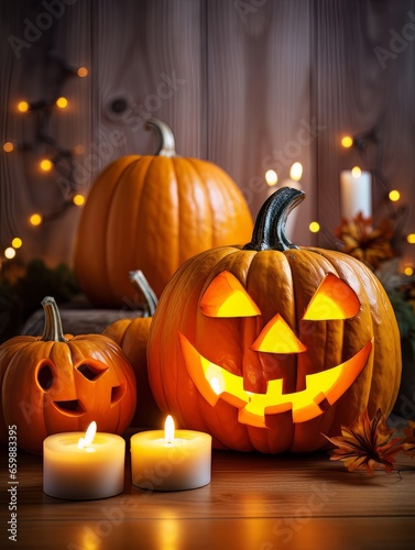 Sinister pumpkin as Halloween symbols tabletop home holiday decor. AI