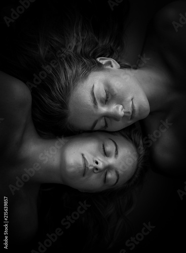 Sisters.Fine art black and white portrait of two beautiful young woman