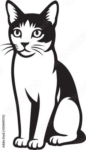 Sitting cat vector graphic illustration, Black and white feline resting pose