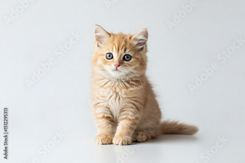 sitting kitten white background, kitten is sitting white background, ginger kitten is sitting, sitting orange cat white background, orange cat fluffy fur