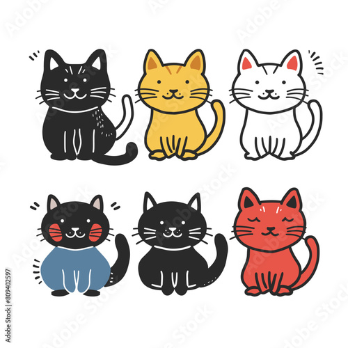 cute, cartoon, cat, colours, smiling, diverse, felino, character, friendly, expression, hand-drawn, style, cat, design, happy, simple, set, red, graphical, cheerful, animal, collection, variety, bright, adorable, whisker, tail, sitting, playful, charming, illustration, drawing, fun, domestic, vector, art, creativity, colourful, pet, graphic, charme, playfulness, domesticated, artwork, creative, 6, various, happily, wearing