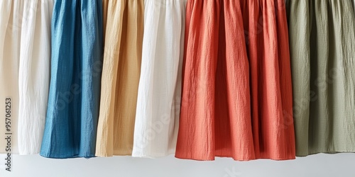 fabric, cotton, white, cream, beige, yellow, orange, peach, salmon, red, rust, green, olive, teal, blue, turquoise, water, linen, garment, skirt, clothing, fashion, apparel, style, casual attire, feminine, natural, texture