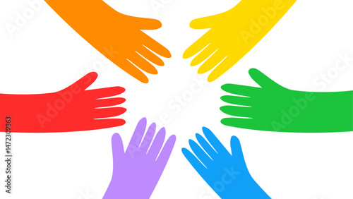 hand, rainbow, colours, pride, equality, inclusion, diversity, oneness, support, love, right, colours, symbol, community, solidarity, red, orange, yellow, green, blue, purple, together, connection, peace, freedom, respect, hand, vector, illustration, group, arm, united, colourful, social, white background