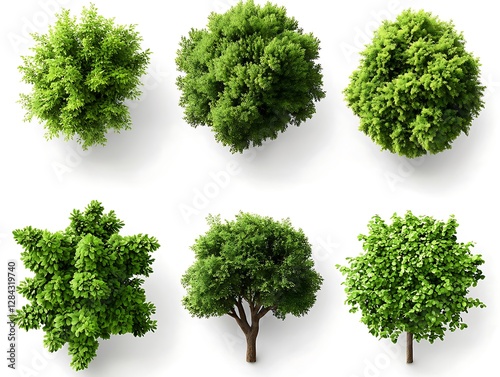tree, tree, shrub, shrub, leaf, green, foliage, nature, overhead, plant, landscape, view, white, background, isolated, branch, shadow, bush, round, leaf, top, earth, environment, natural, forest, forestation, plant, texture