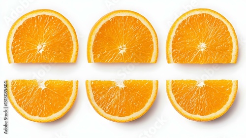 Six Orange Slices on White Background Vibrant Citrus Pattern