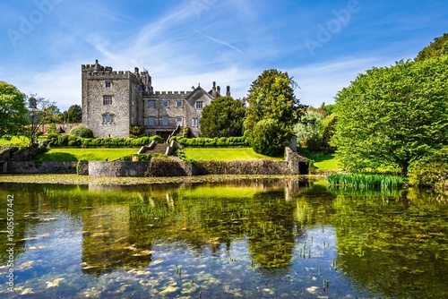 old, tower, british, britain, parkland, lake district, estate, historic, aerial view, aerial, drone, wall, travel, garden, pathway, keep, district, fortified, formally, stone, home, structure, heritage, mediaeval, architecture, landmark, construction, english, britain, building, historical, exterior, castle, landscape, culture, attraction, england