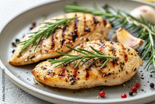grilled chicken, rosemary, garlic, oil, chicken breast, breast, tomatoes, lemon, dark background, chicken, grilled, food, meal, meat, dinner, plate, fried, fish, dish, salmon, lunch, cookery, salad, vegetable, epicure, healthy, white, cooked, closeup, steak, green, seafood, vegetable