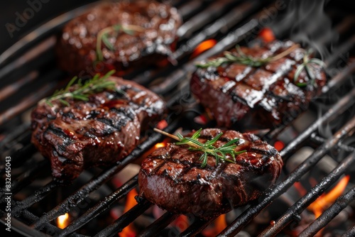 Sizzling meat on the grill with hot coals, juicy and tender, outdoor barbecue, summer vibes, highquality stock photo, isolated on white background