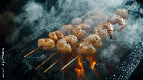 shrimp, seafood, skewer, grilled, bar-b-q, sizzling, smoky, charred, accessing, epicure, culinary, delicious, mouth-watering, tempting, food photography, fine dining, special occasion, celebration, entertaining, hospitality, gastronomy, culinary arts, seafood, crustacean, flavorful, aromatic, savoury, texture, presentation, appetising, refreshing, light, healthy, balanced, alimentary, sustainable, fresh, premium, artisanal, handcraft, indulgent