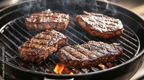 Sizzling steaks on a charcoal grill, a delicious barbecue experience outdoor