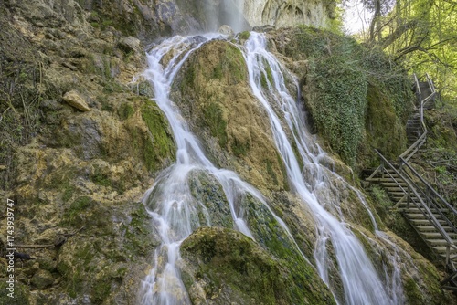 Skakavac waterfall with climbing facility in Papuk National Park, Jankovac, Slatinski Drenovac, Virovitica-Podravin County, Croatia