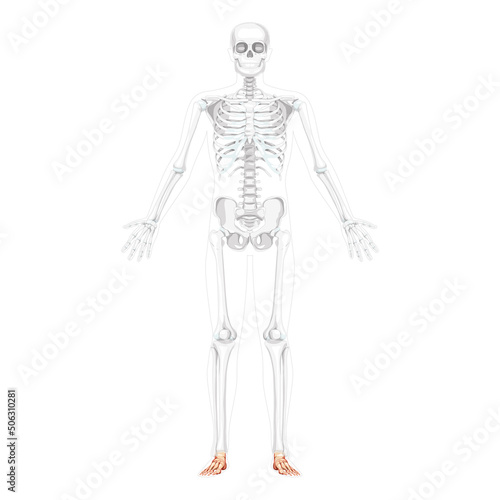 Skeleton Foot and ankle Bone Human front view with two arm open pose with partly transparent bones position. 3D realistic flat natural color Vector illustration of anatomy isolated on white background
