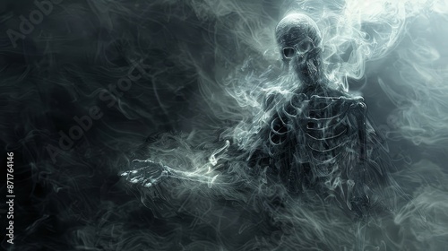skeleton, smoke, ghost, spirit, death, horror, dark, scarey, haunted, mystery, skull, bone, shadow, halloween, fantasy, digital, art, concept, illustration, abstract, surreal, creepy, eerie, fog, aethereal, spectral, grim, reaper, ghostly, grisly, gothic, supernatural, paranormal, undead, afterlife, unseen, mythology, mystical, enigmatic, ghastly, cloud, swirling, mysterious, haunting, phantom, apparition, ominous, skittish