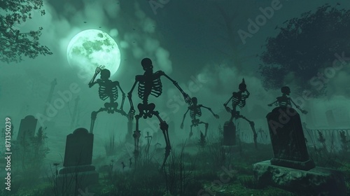 skeleton, dance, cemetery, halloween, flat, design, front, view, skittish, theme, chill, frightened, scarey, background, festive, horror, eerie, phantom, terror, dancer, scene, grisly, sky, forest, fog, icon, monster, creature, cartoon, dark, fly, bizarre, cadaver, fright, graphic, broom, party, sorcerer, grave, mist, dusk, undead, puckered, walk, shadow, full, ghoul, moon, gravestone