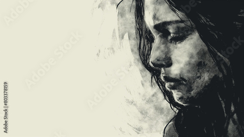 woman, face, people, black, person, head, black-and-white, hair, model, drawing, beauty, illustration, crying, young, background, wallpaper, art, card, display, montage, copy space, presentation, upset, distress, sorrowful, sad, vignetting