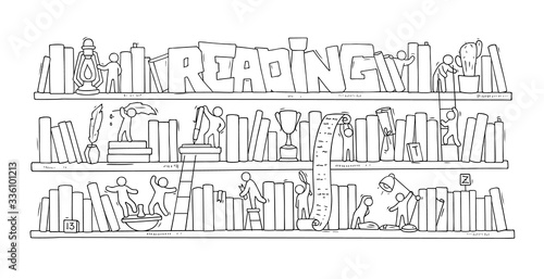 book, vector, library, cognition, illustration, education, information, study, literature, read, university, people, shelf, background, student, bookshop, bookshelf, man, person, stack, text, learn, paper, design, row, character, bookcase, bookshop, shelf, office, textbook, reading, cover, set, librarian, collection, word, concept, learning, pile, supply, drawn, men at work, stationery, business, cartoon, team, teamwork, doodle, many