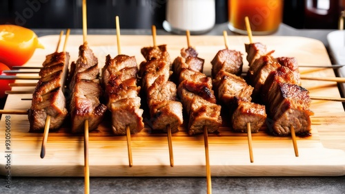 skewers of meat on sticks, crisp