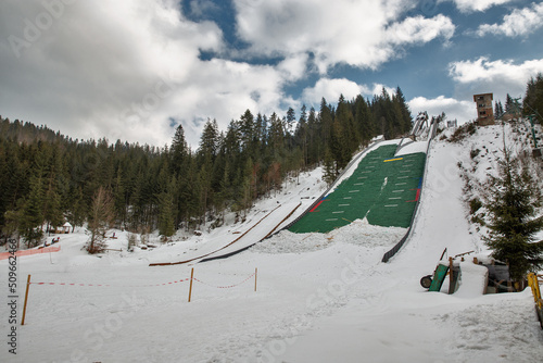 Ski jumping board in Vorokhta, Carpathian Mountains, Ukraine.