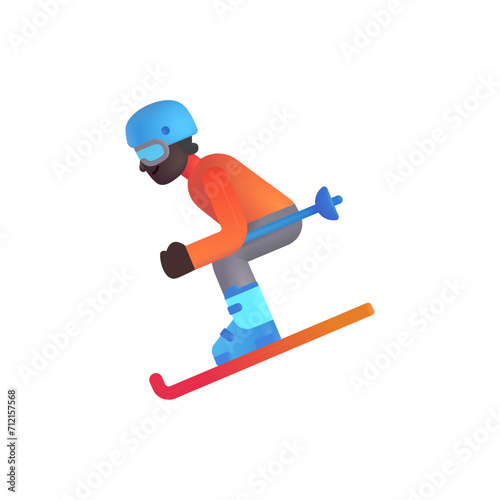 skiing, winter, snow, mountain, sport, adventure, outdoors, cold, slope, alpine, recreation, skier, gear, speed, downhill, fluent, sticker, emoticon, three-dimensional, design, expression, gesture, cartoon, signs, symbol