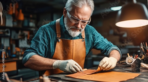 craftsman, leather, skilled, carefully, work, showcase, dedication, artistry, well, light, detail, heritage, textile, pattern, artisan, equipment, precision, workspace, garment, finish, tradition, quality, elderly, craftsmanship, project, silhouette, hobby, workbench, product, vintage, texture, custom, technique, tailor, passion, design, bequest, construction