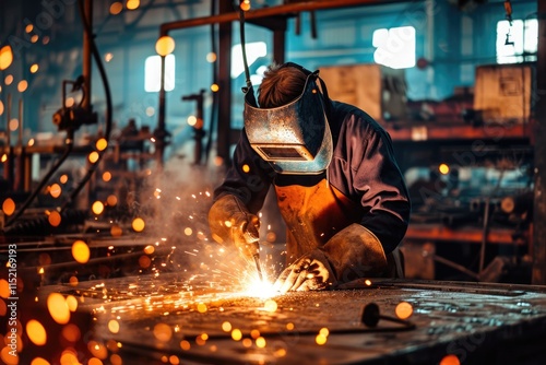 Skilled Craftsman: Welder in Metal Workshop Bonding Steel with Professional Torch