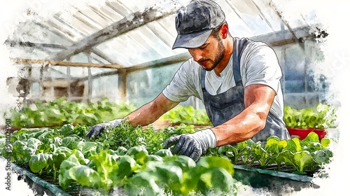 gardener, greenhouse, horticulture, organic, farming, cultivation, vegetable, greener, lettuce, produce, sustainable, agriculture, men at work, planting, hand, glove, environment, natural, growth, harvest, rural, fresh, healthy, lifestyle, profession, career, plant, crop, food